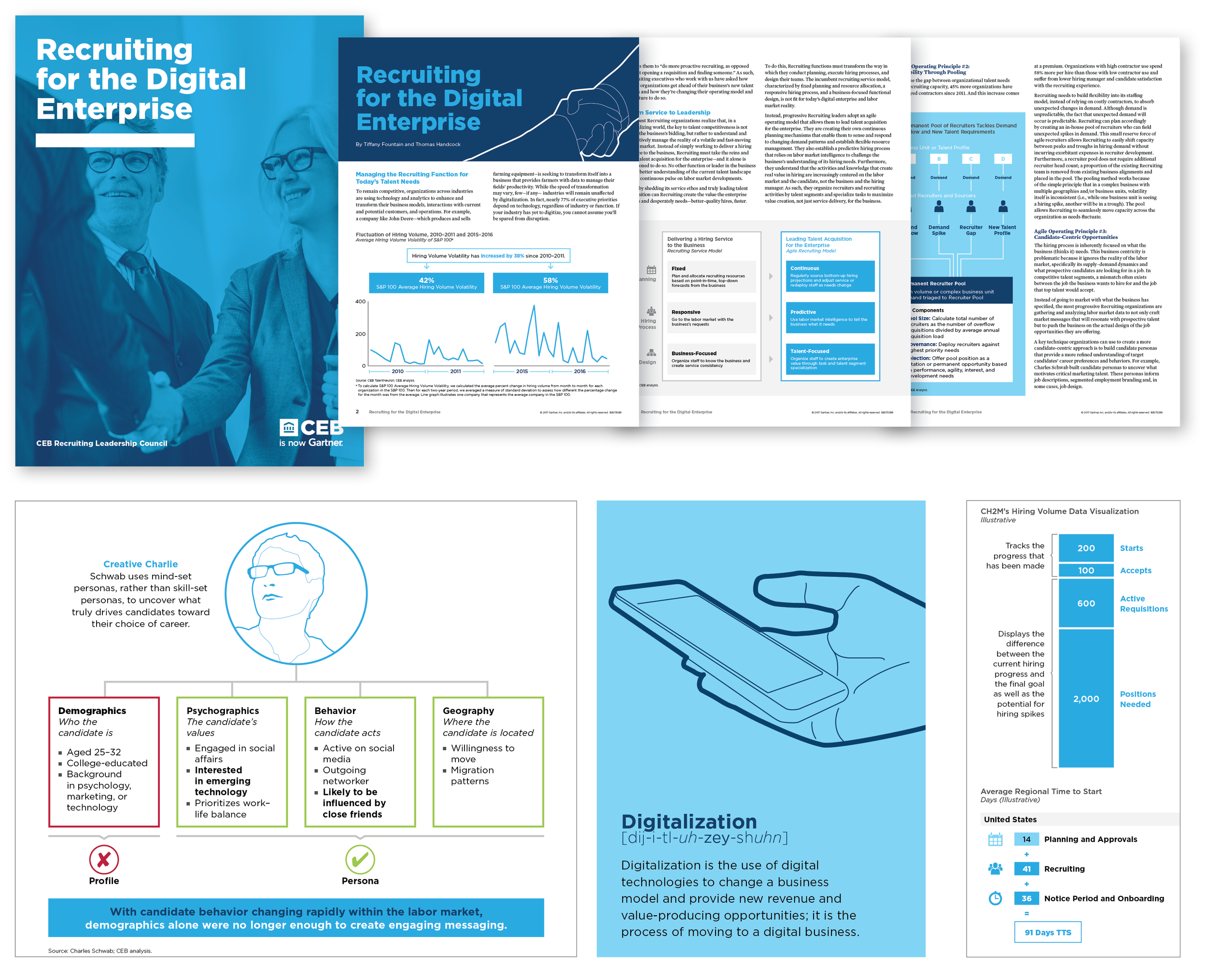As an in-house Senior Graphic Designer at CEB, I worked cross-functionally to design reports, journals, toolkits, training collateral, presentations, web graphics, and more. After CEB was acquired by Gartner, our creative department shepherded a new brand identity across new and existing materials.